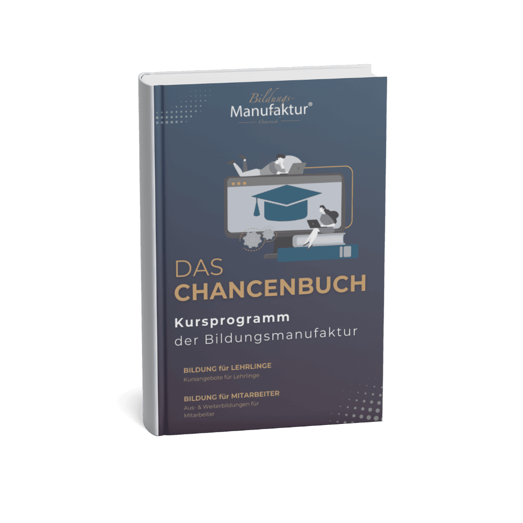Im Chancenbuch finden Sie das gesamte Kursprogramm der Bildungsmanufaktur® – inklusive Inhalte, Umfänge und Hinweise zu Fördermöglichkeiten